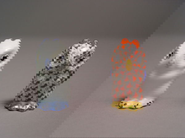 Two Herend Owl Figurines Rust Fishnet