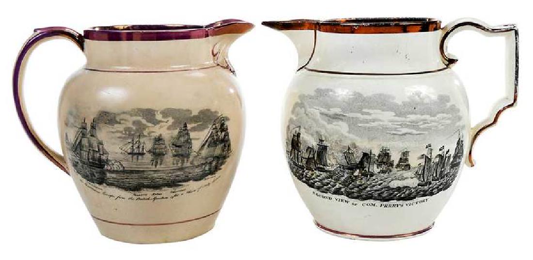 Two Historic Transfer Decorated Lustre Pitchers
