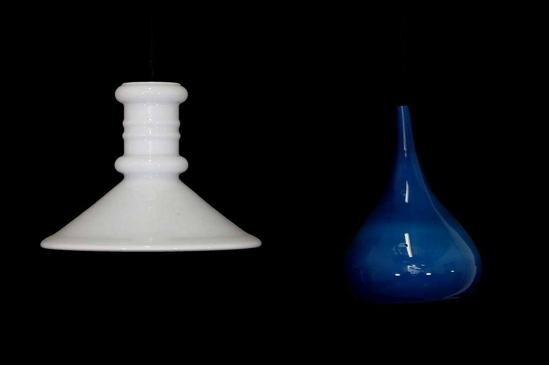 Two Holmegaard glass light pendants,