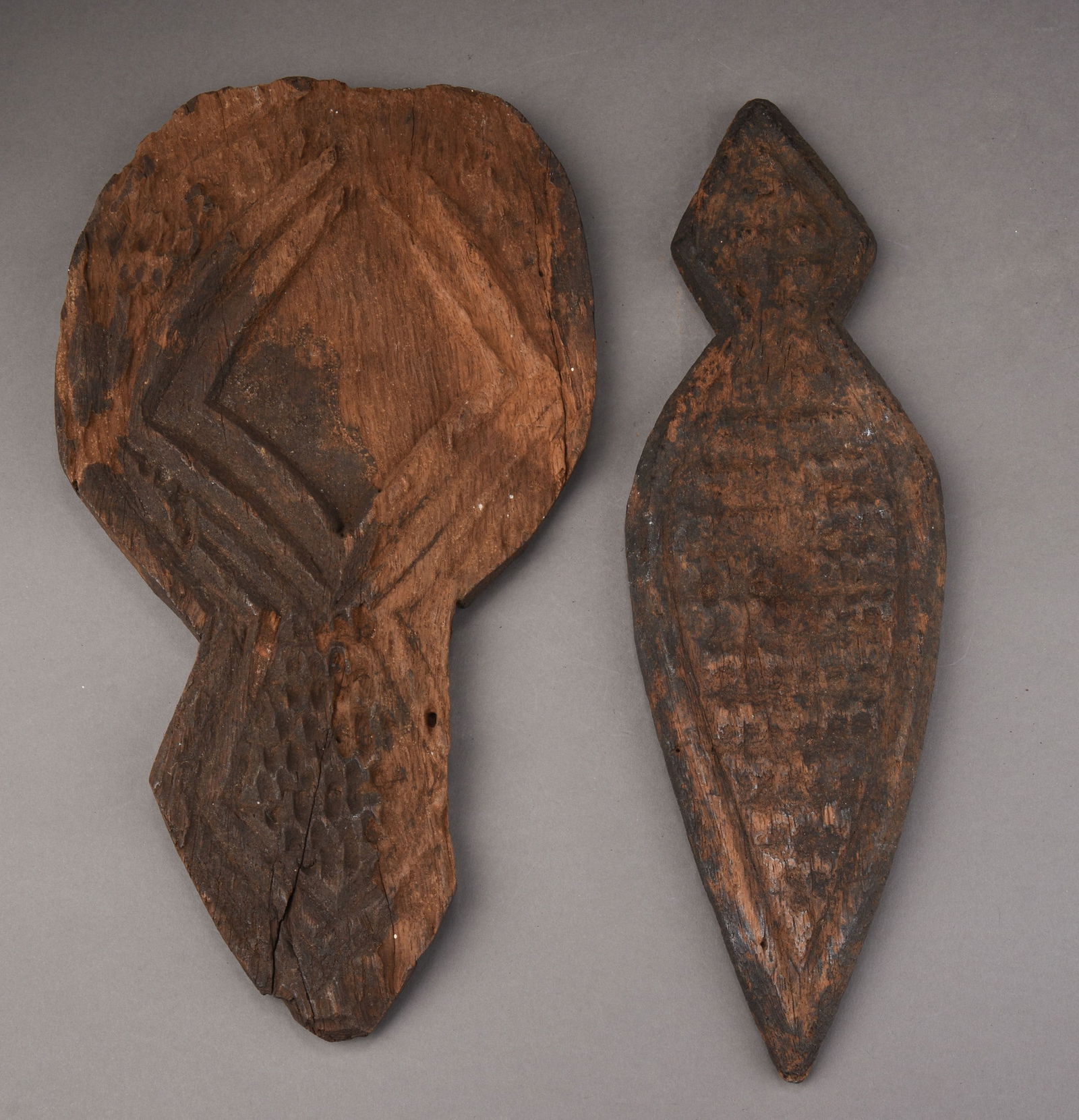 TWO IGBO WOODEN DIVINATION TRAYS