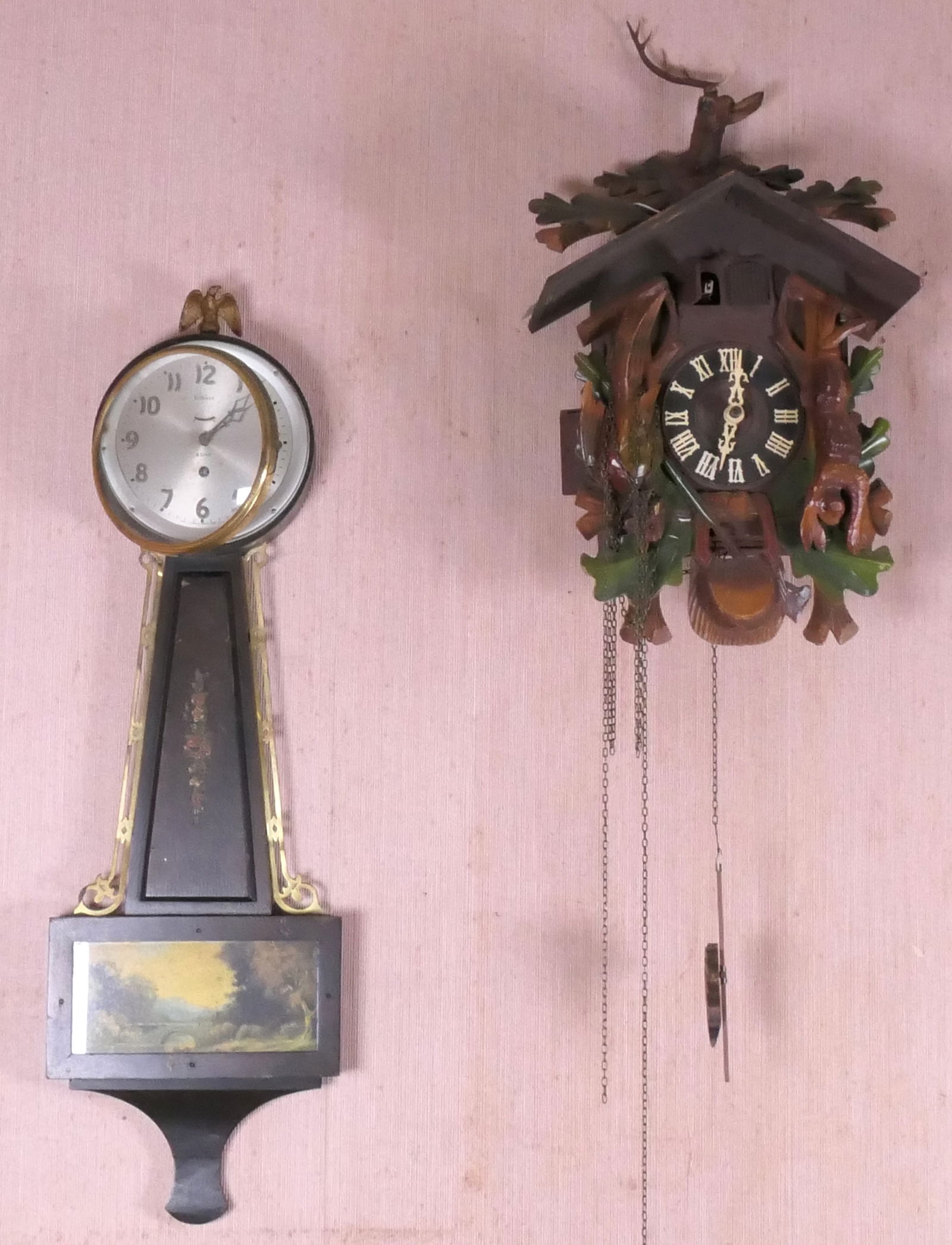 LARGE LOT OF VINTAGE CLOCKS5 days LeftA composed lot of six various mechanism clocks for reconstruction or partsFeb 24, 2026Two Vintage Timer Switch Clocks Telechron & General ElectricMar 02, 2026Regulator Long Case Wall ClockFeb 26, 2026German 3-Weight Wall Clock with Moon Phase & Musical AutomataMar 15, 2026Antique European Wall Clock with Dual Weights & Gong StrikeMar 15, 2026German Jauch Westminster Chime Wall ClockMar 15, 2026ASIAN WOOD MANTLE CLOCK / ZANDAAM WALL CLOCKFeb 24, 2026Large Black Forest Cuckoo Clock, 8-Day MovementMar 15, 2026Antique Dutch Wall Clock with Brass Atlas & WeightsMar 15, 2026ODO Westminster Wall Clock, 8-Day, 3-TrainMar 15, 2026Small Antique German Cuckoo Clock – One WeightMar 15, 2026German Wall Regulator Clock, EnfieldMar 15, 2026Vintage New England Clock Co Wall Clock Case & Movement only, missing parts, 22h x 16w x 5d inchesNew Haven Clock Company Banjo Wall Clock6 days LeftDutch Antique Wall ClockFeb 24, 2026