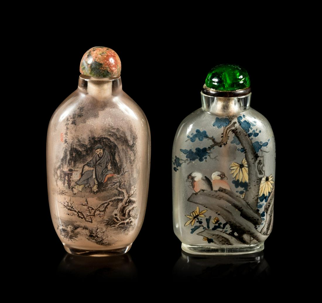 Two Inside Painted Glass Snuff Bottles