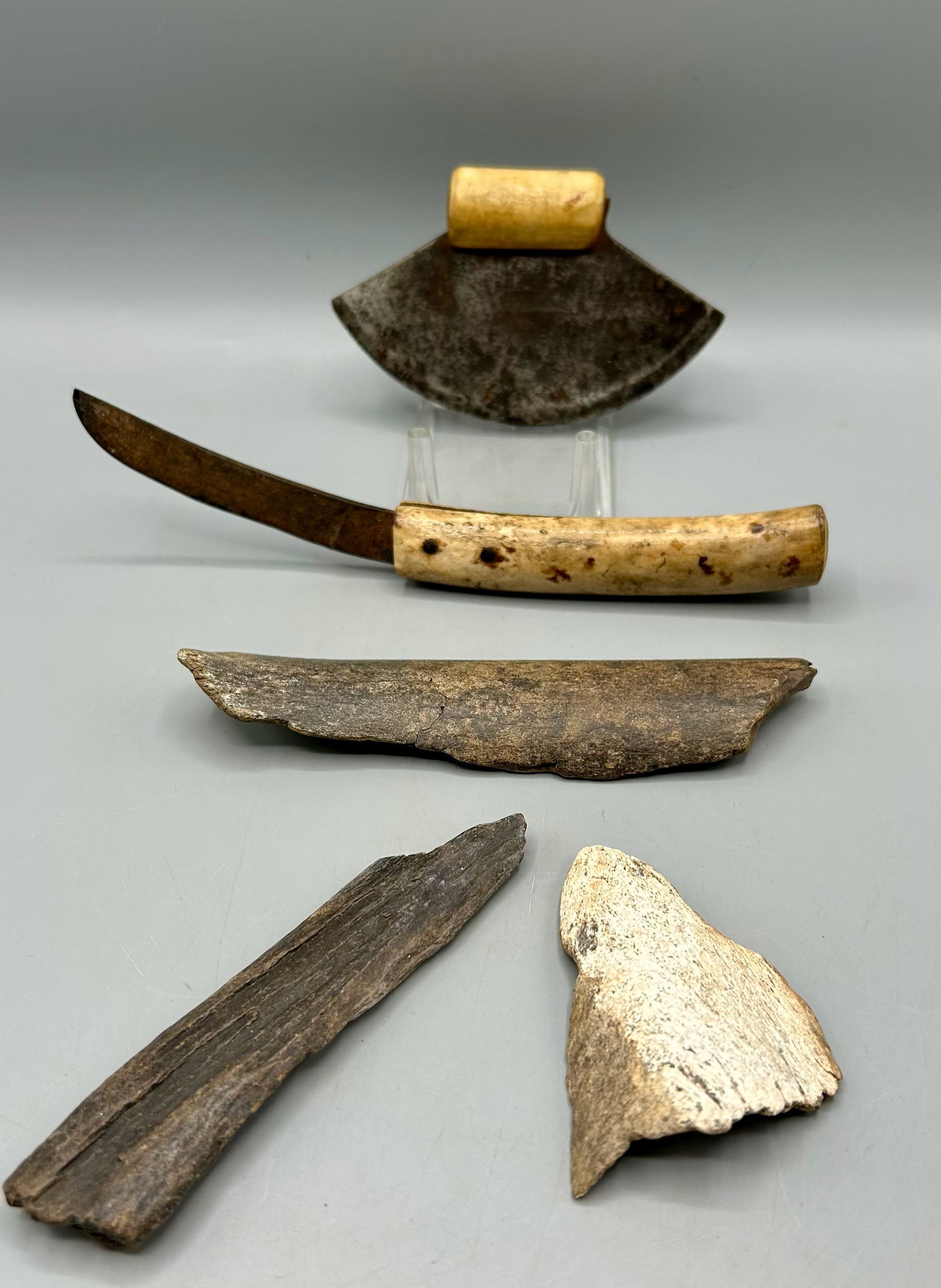 Two Inuit Knives, One Ulu and Three Bone Gouges