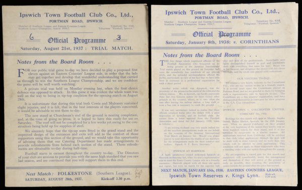Two Ipswich Town Home Programmes 1937 38 Trial Mat