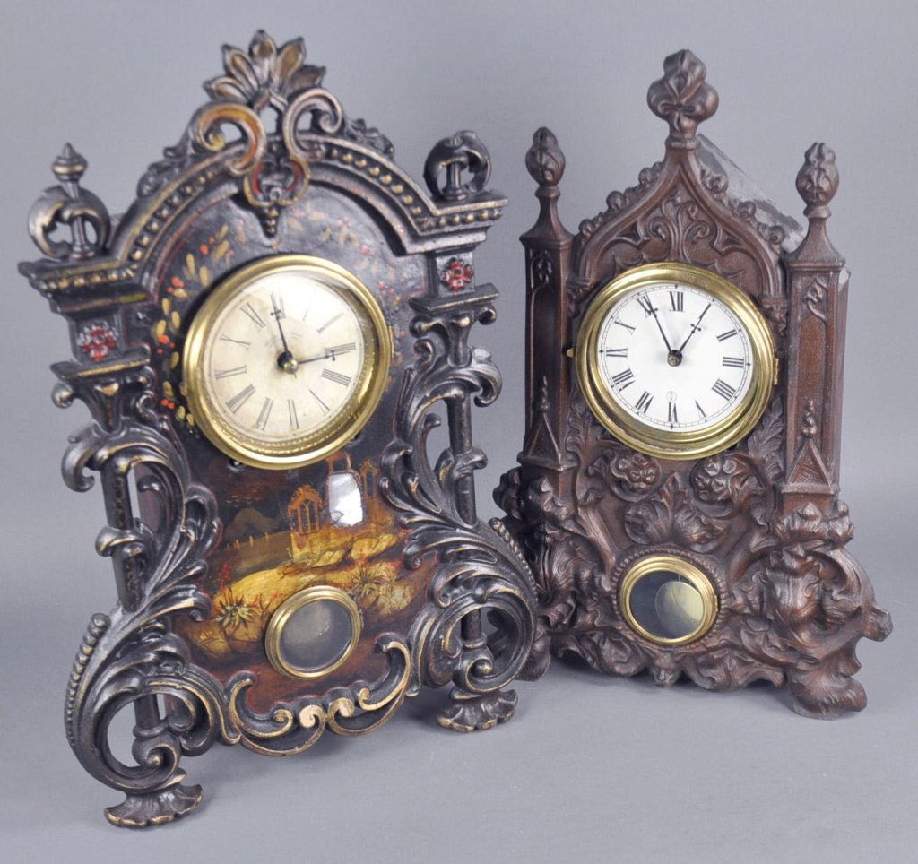 Two Iron Front Mantel Clocks