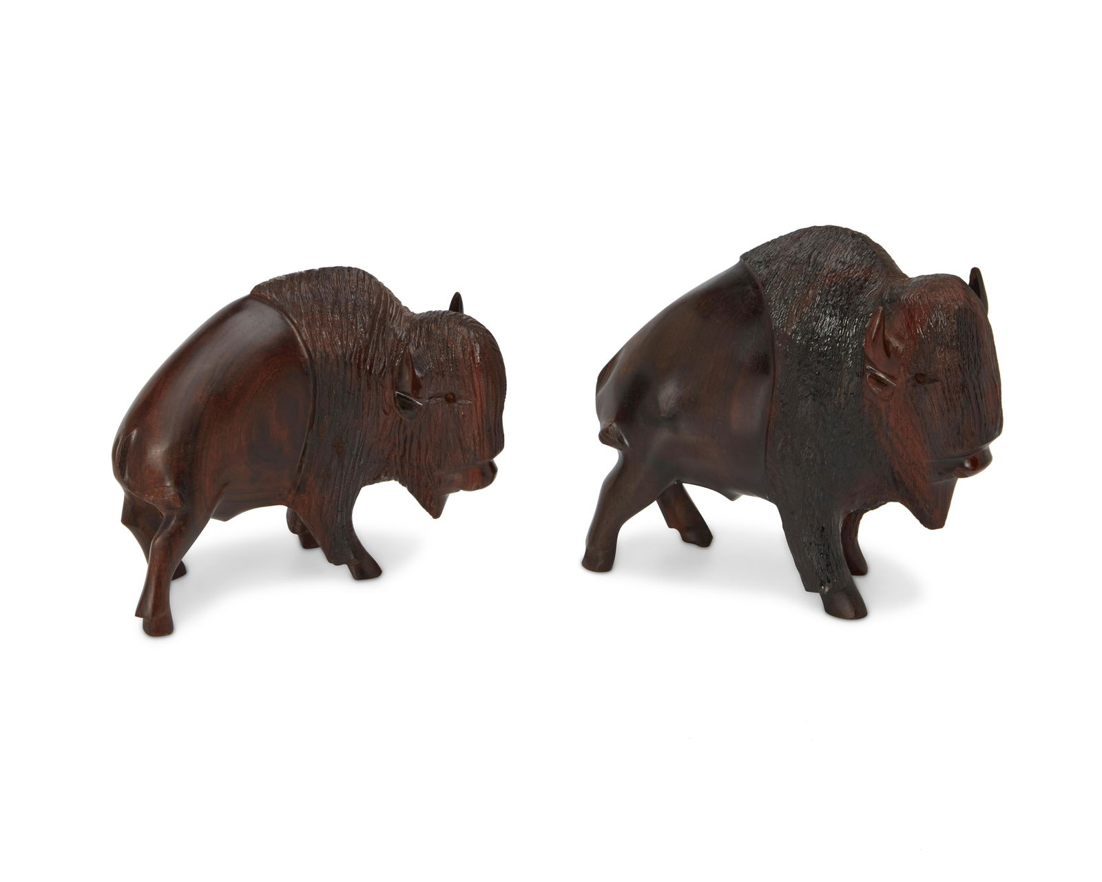 Two ironwood carved bison figures