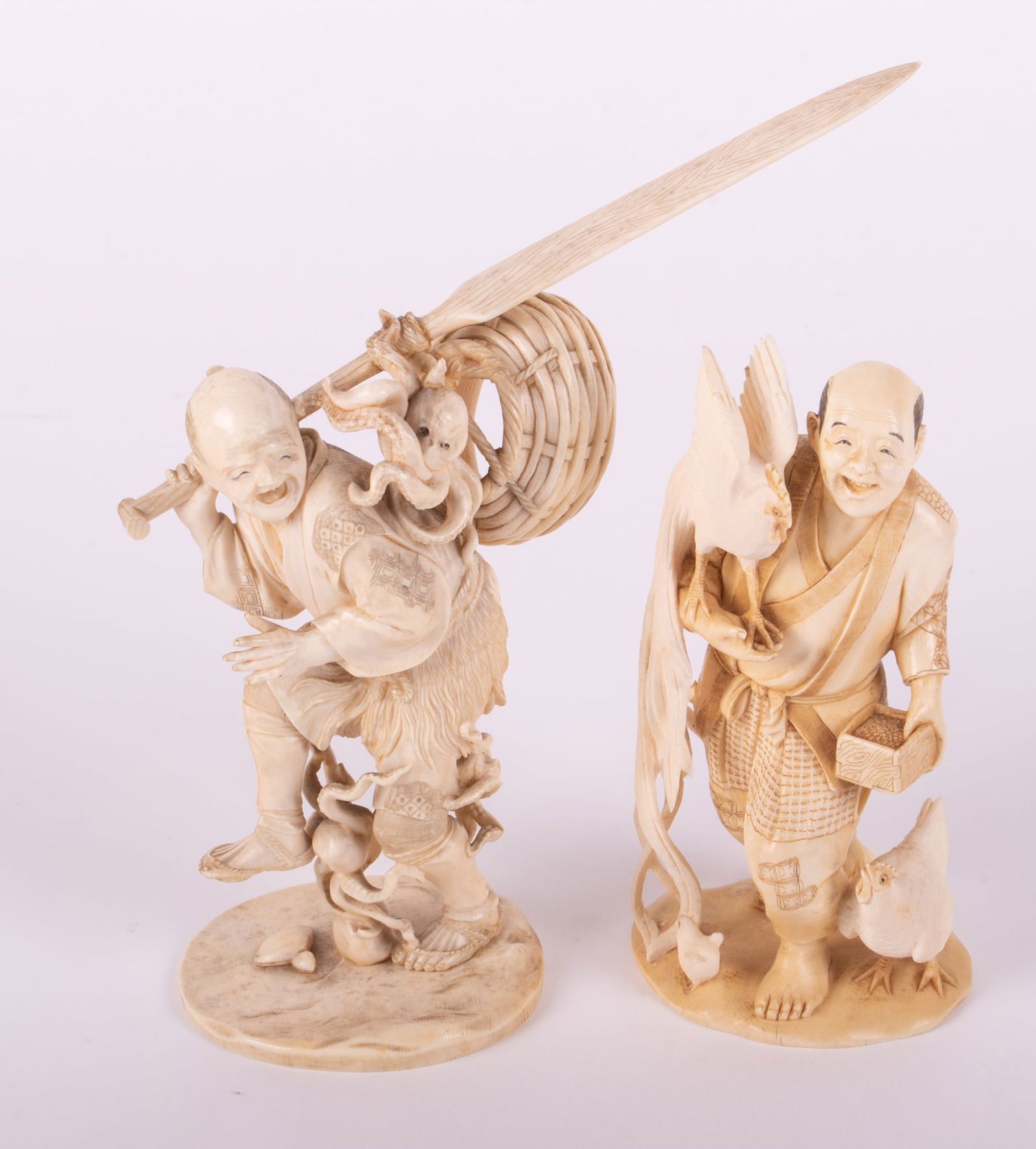 Two Japanese Carved Bone Okimono