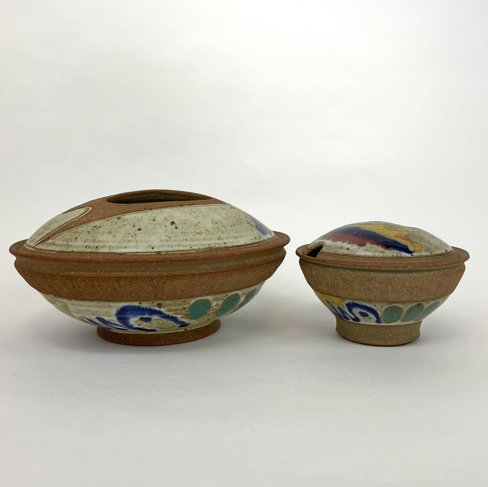 Two Ken Pick Ceramic Covered Bowls Studio Pottery