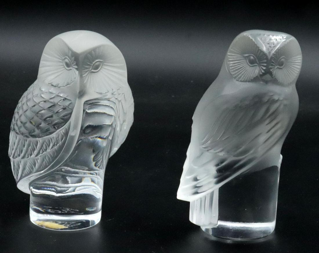 Two Lalique Crystal Owls