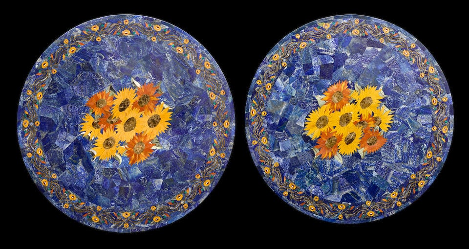 Two Lapis Lazuli and Jasper Intarsia Tabletops