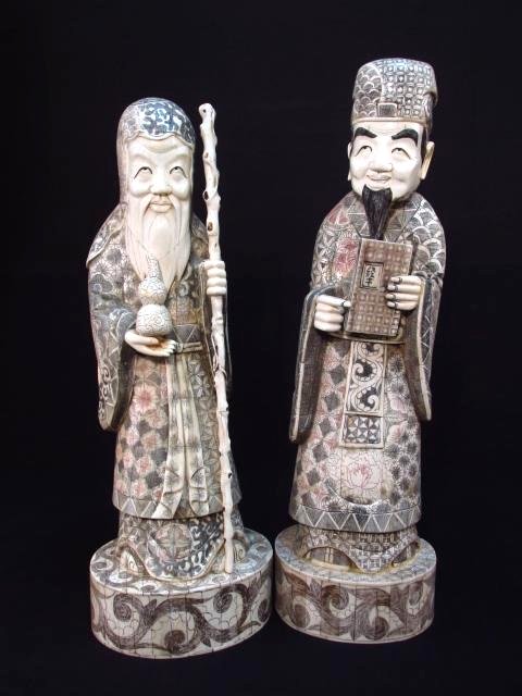 TWO LARGE CHINESE CARVED BONE FIGURES