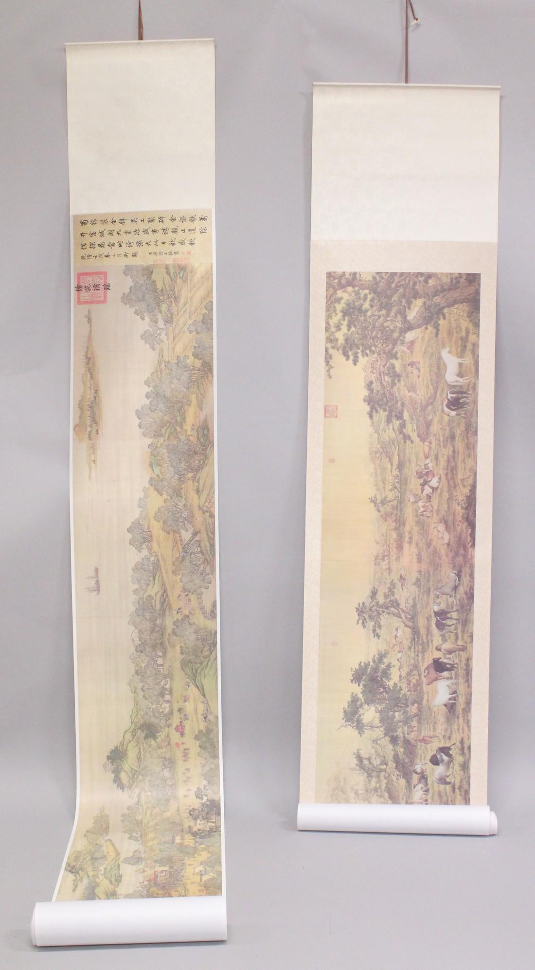 TWO LARGE CONTEMPORARY CHINESE SCROLLS in fitted scroll cases, (2).