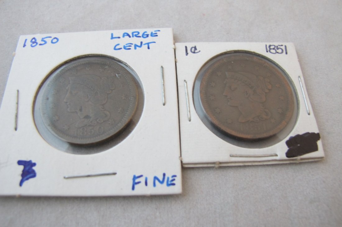 Two Large Copper Cents 1850, 1851