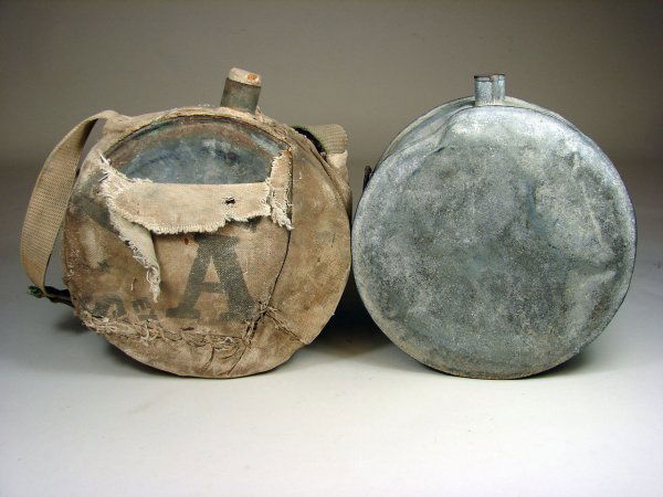 Two Large Tin Western Style Canteens
