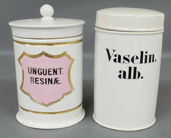 Two large white porcelain apothecary jars, 19th c., eac