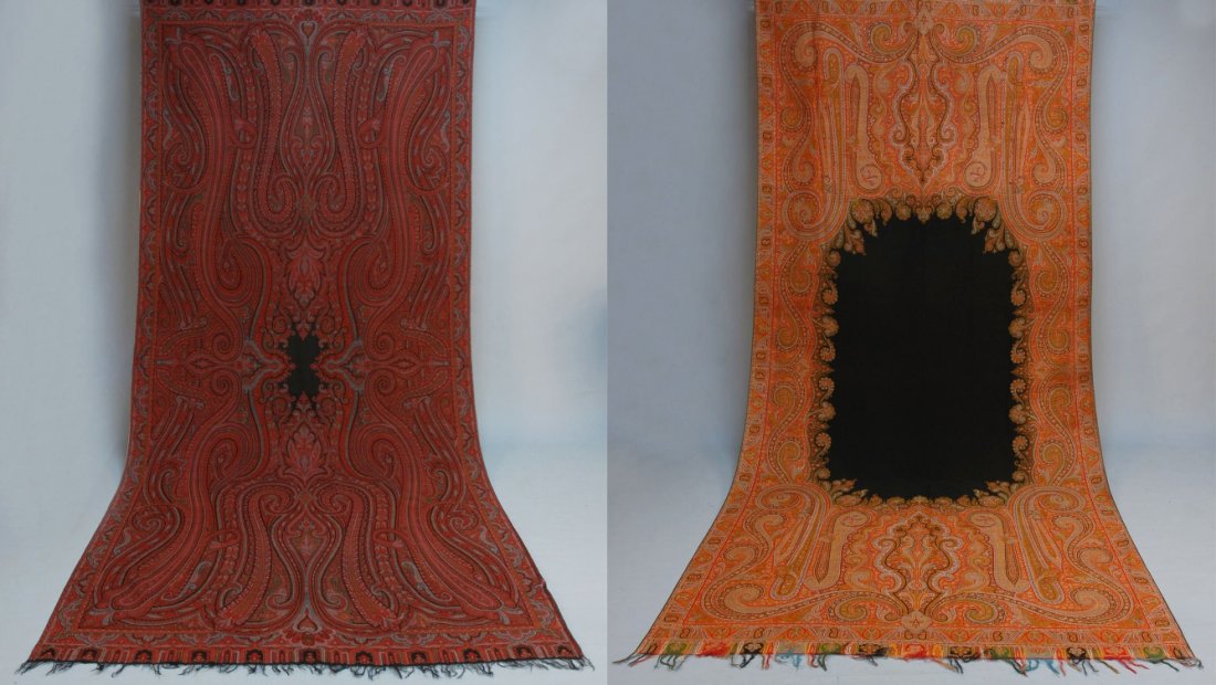 TWO LONG PAISLEY SHAWLS, 19th C.