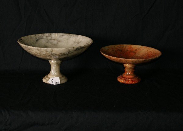 Two marble compotes. Tallest H:6. 5" D:11. 5"