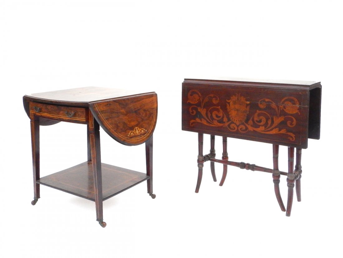 Two Marquetry Drop-Leaf Side Tables