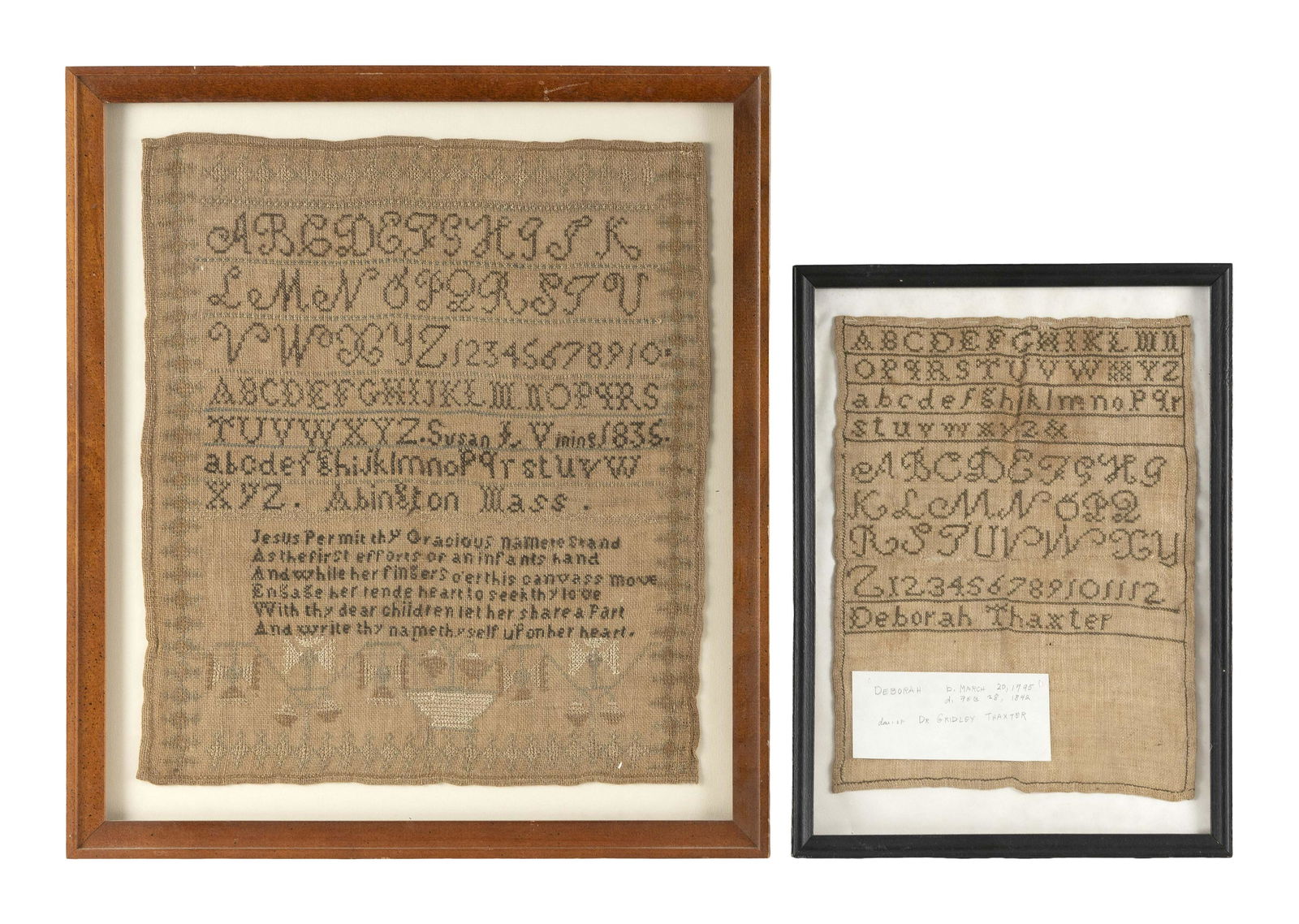 TWO MASSACHUSETTS NEEDLEWORK SAMPLERS Dated 1835