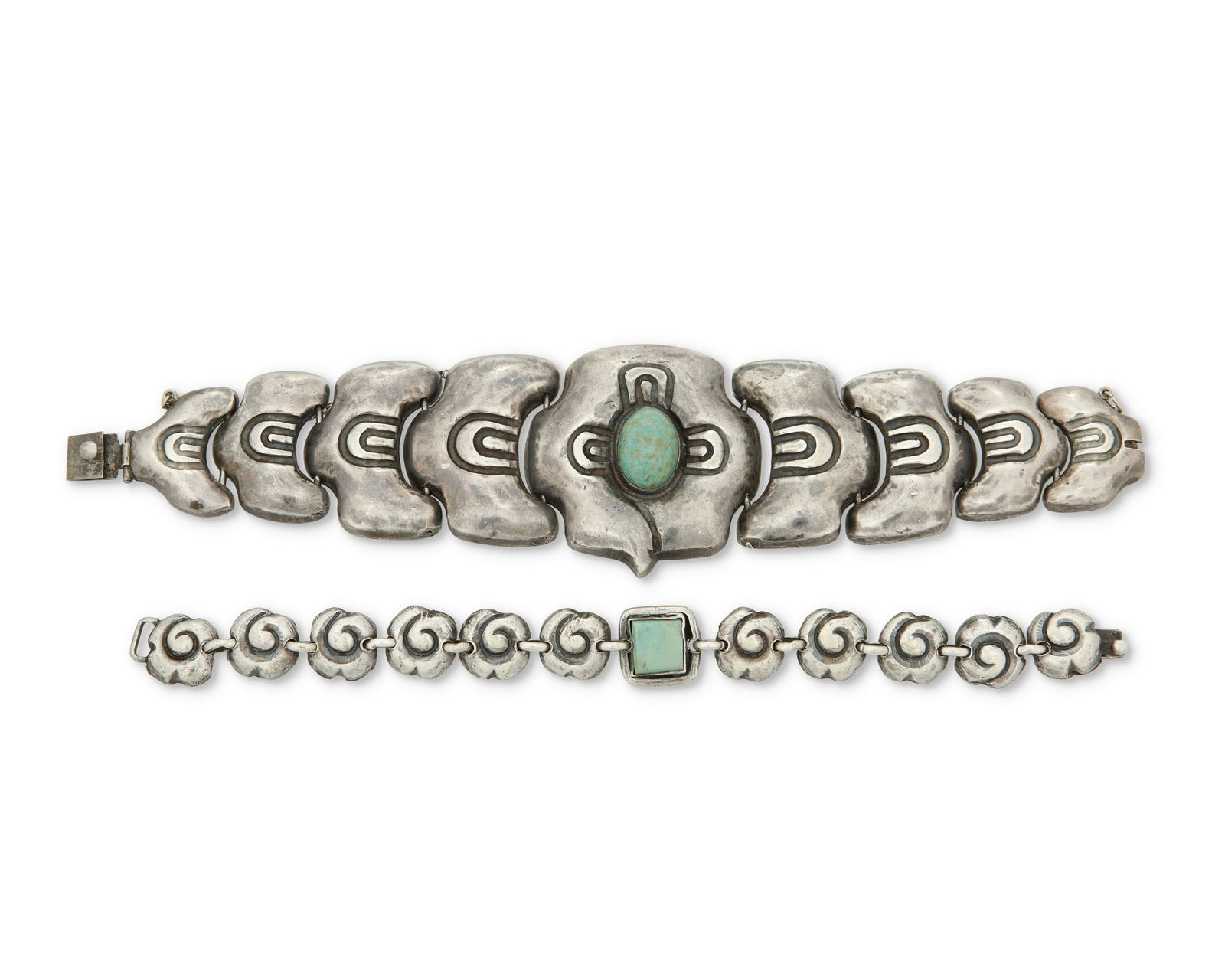 Two Matl silver and turquoise bracelets