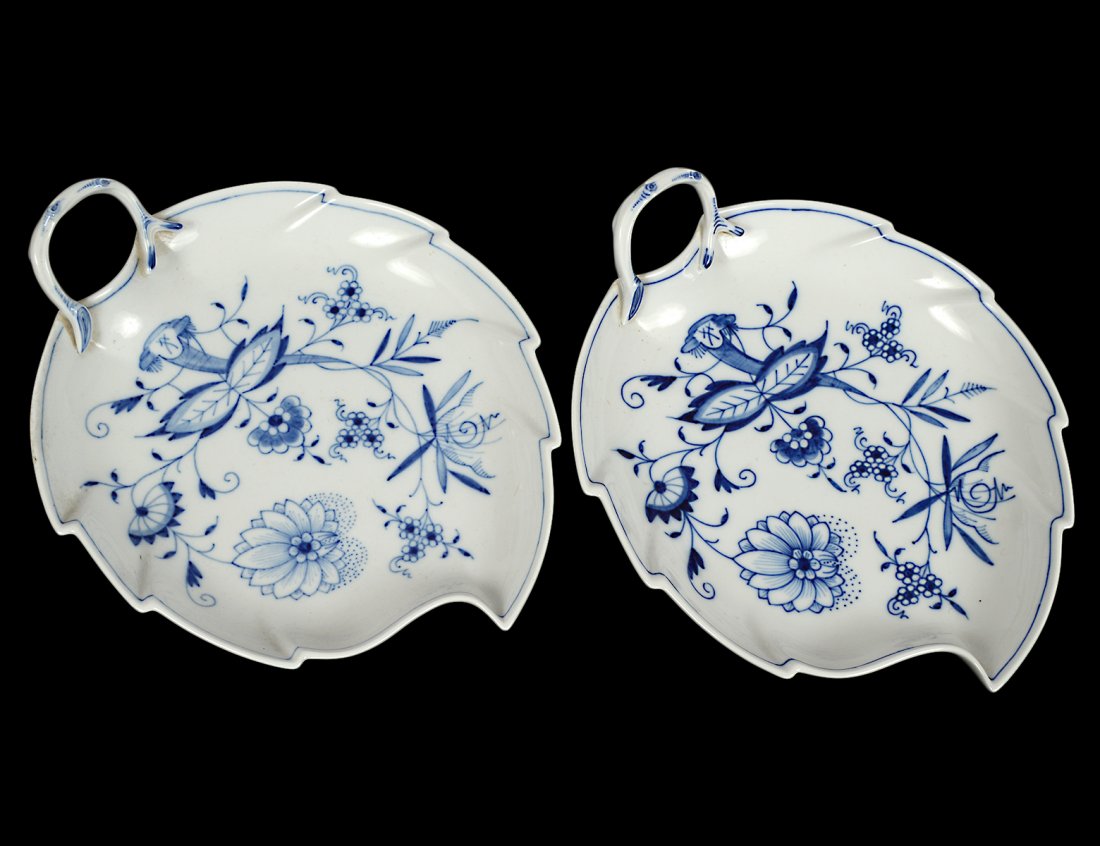 TWO MEISSEN PORCELAIN LEAF SHAPED DISHES