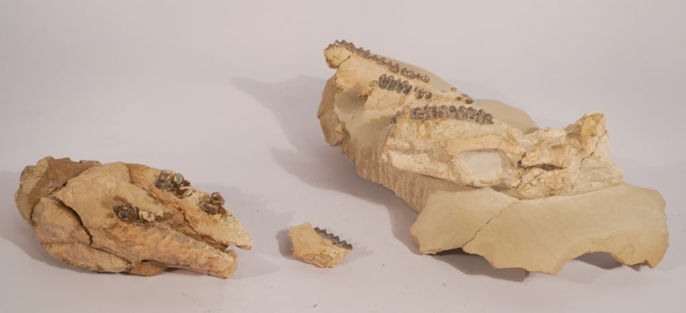 Two Mesohippus Fossil Skull Specimens