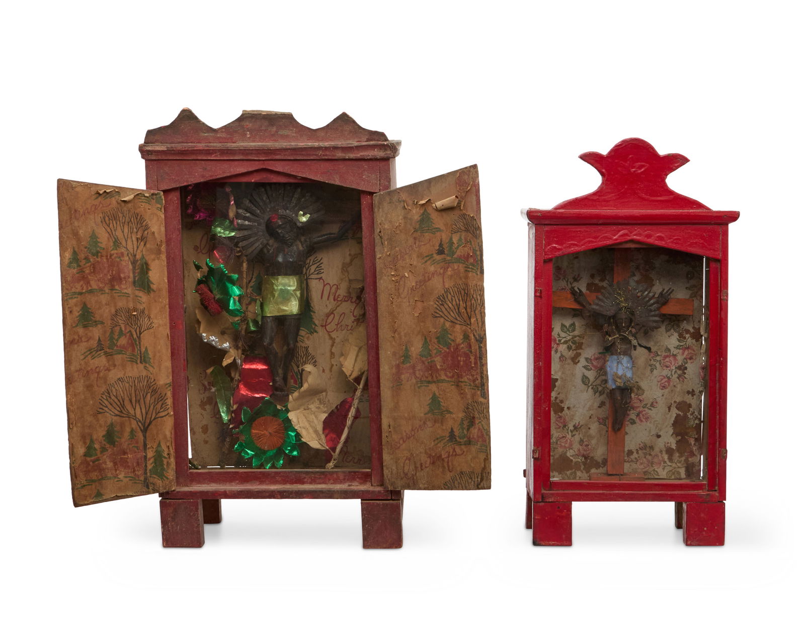 Two Mexican Cristo nichos