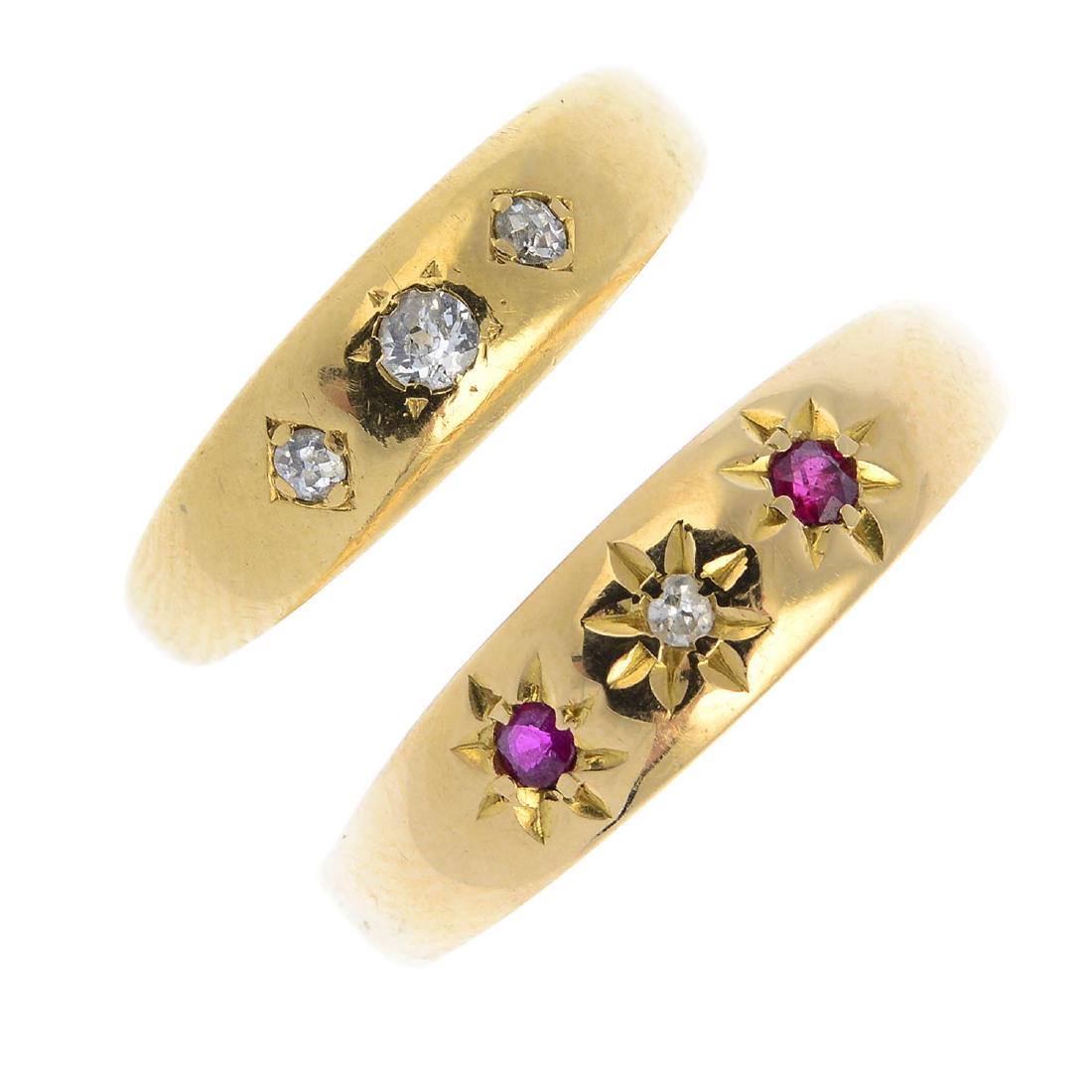 Two mid 20th century 18ct gold diamond and ruby