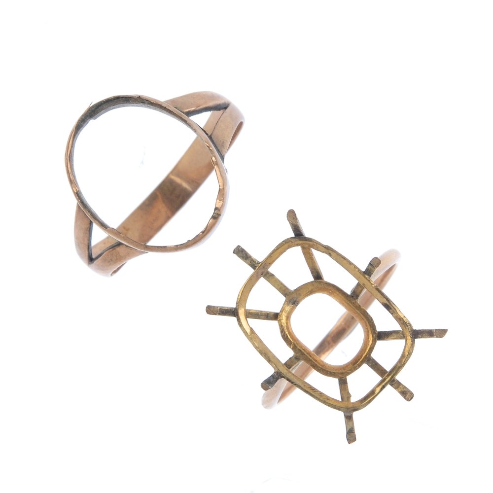 Two mid 20th century 9ct gold ring mounts. To include