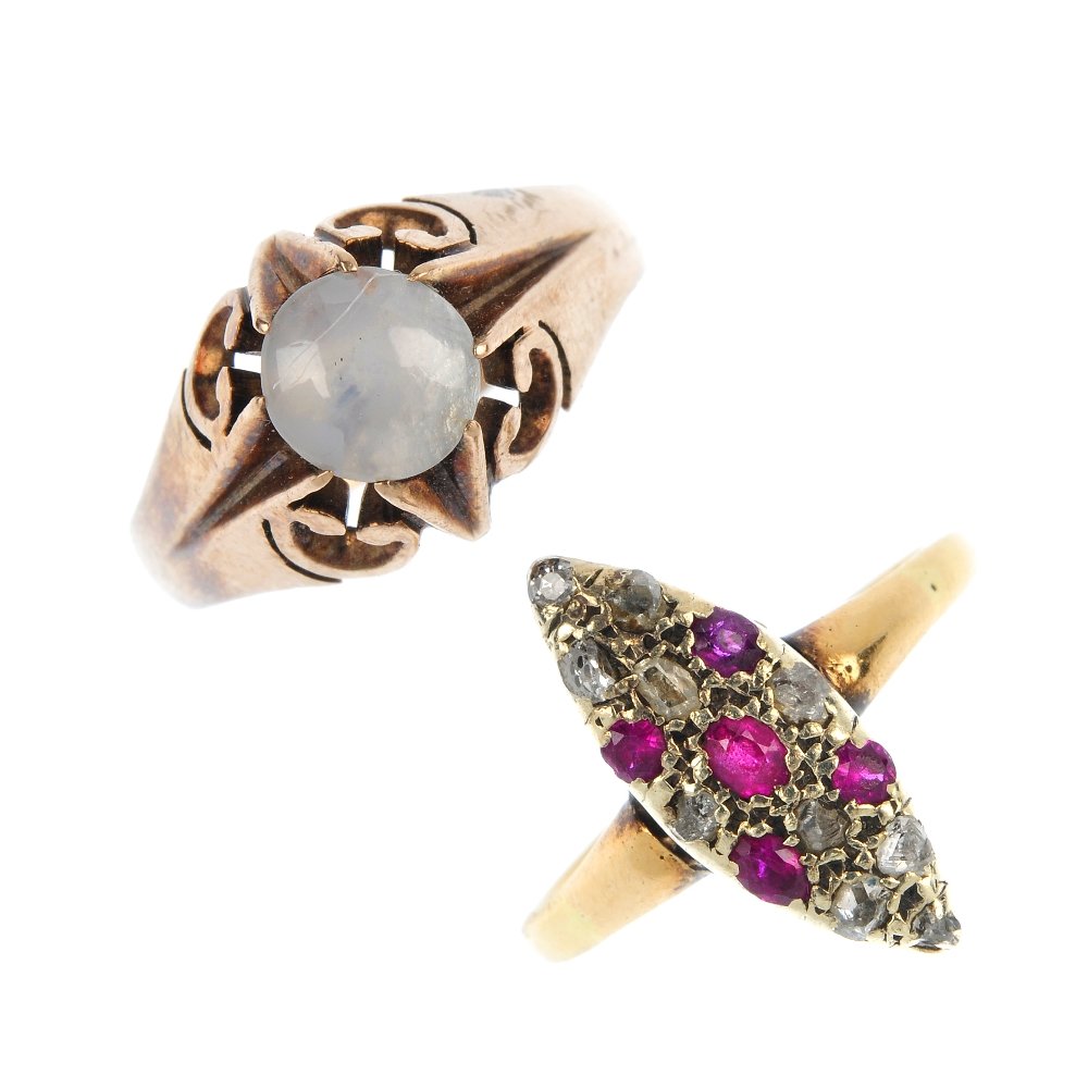 Two ladies' rings. 585 yellow gold, white gold and rose gold set with diamonds and coloured stones.Auktionshaus Schreiber4.3(13)€7007 days Left