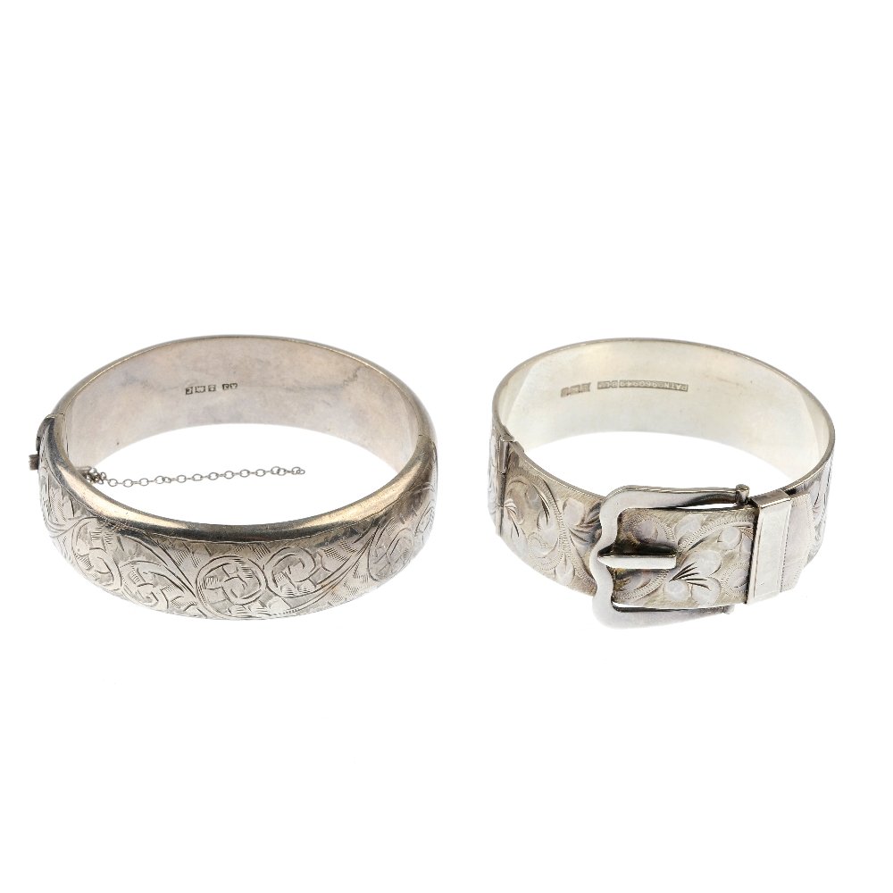 Two mid 20th century silver hinged bangles.
