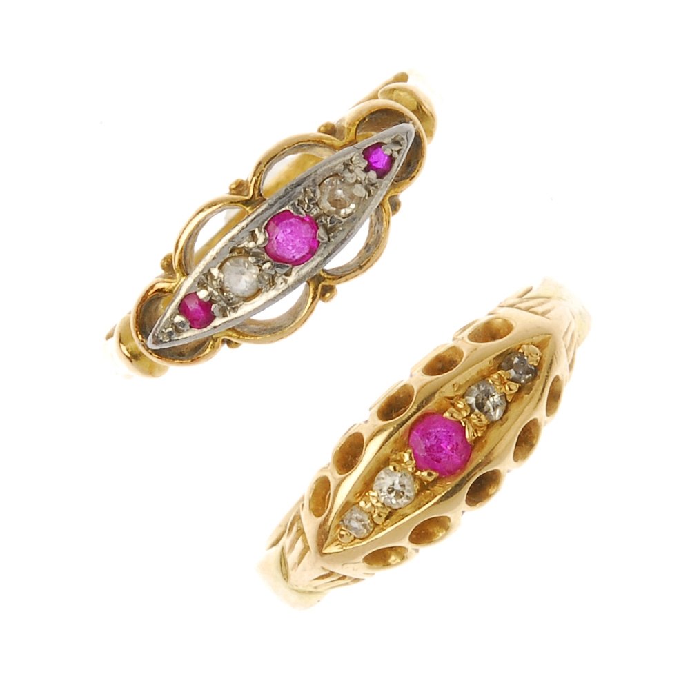 Two mid 20th century synthetic ruby and diamond rings.