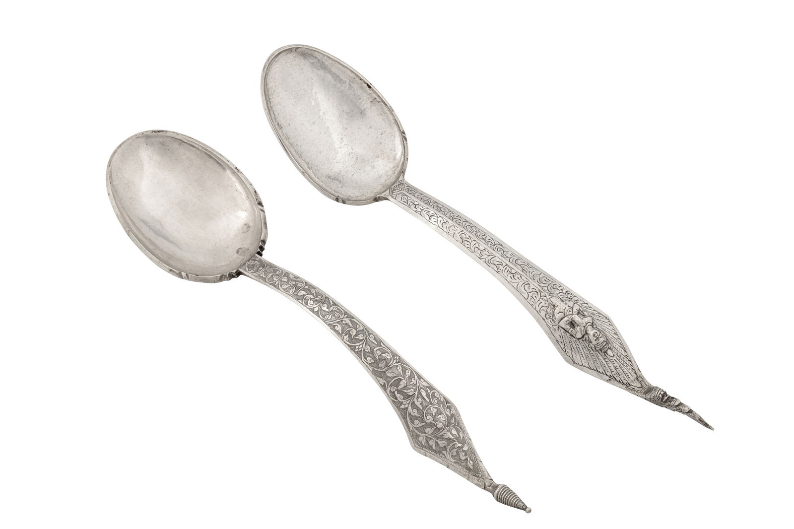 Two mid-20th century Thai silver serving spoons