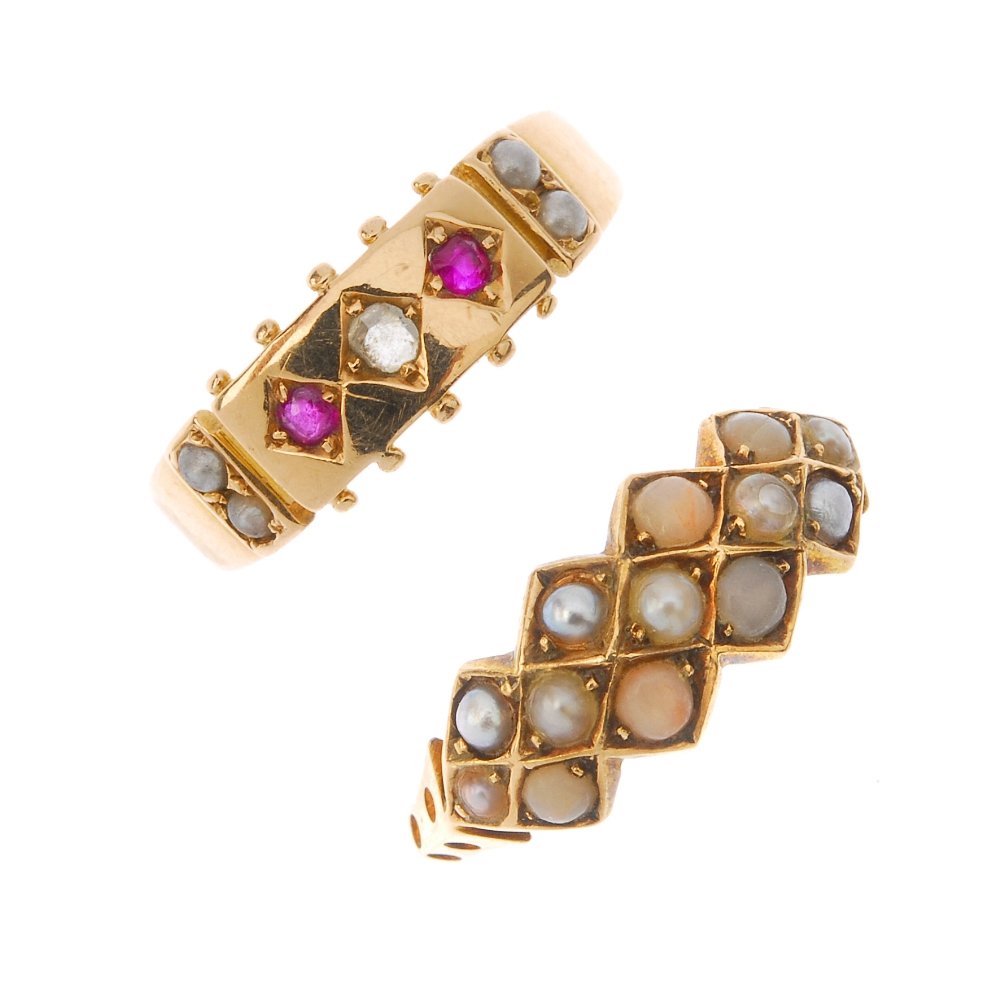 Two mid Victorian 15ct gold gem rings. To include a