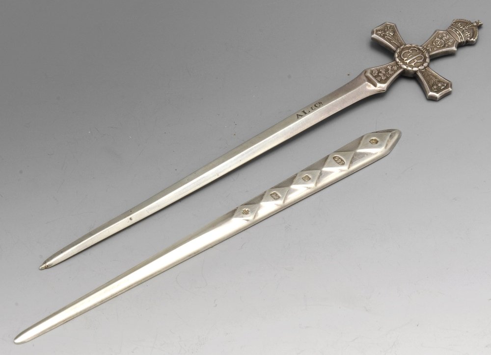 Two modern silver letter openers.