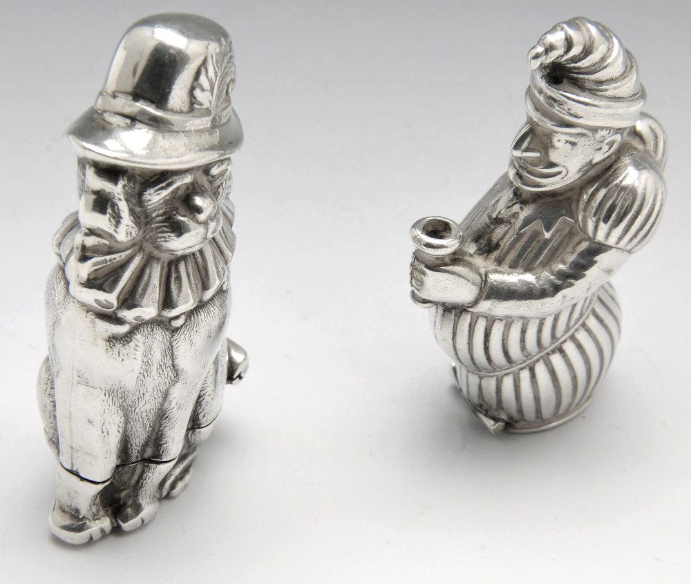 SoldTwo English Silver Animal Form Vesta CasesTwo English Silver Animal Form Vesta Cases Comprising: A teddy bear, mark of David A Bowles, London, 1997 A pig, Birmingham, 1997, maker's mark, 'MS' The bear 2 1/8 in. high, the pig 2 1/4 in. long,See Sold Price