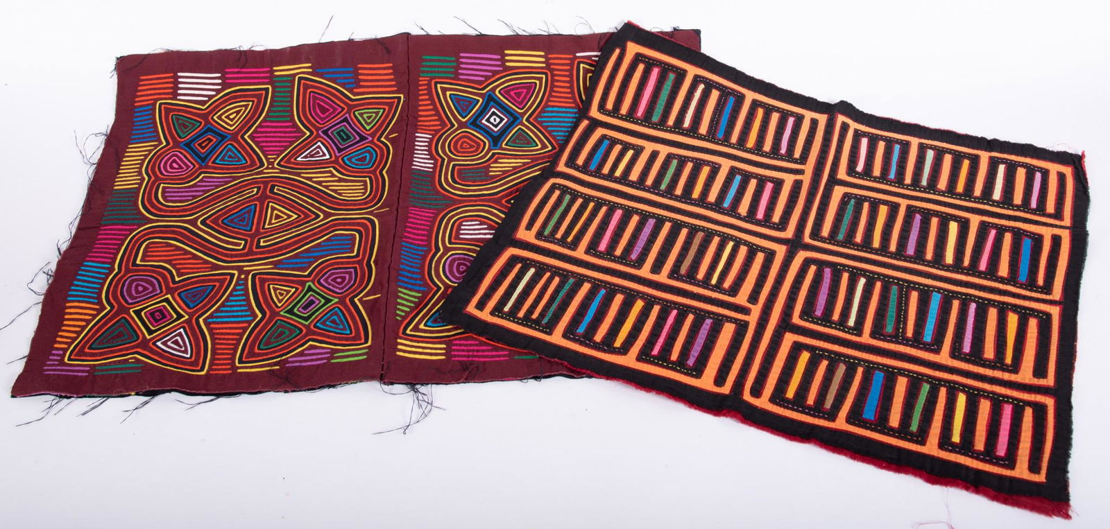 Two Mola Textiles Having Vibrant Geometric Patterns