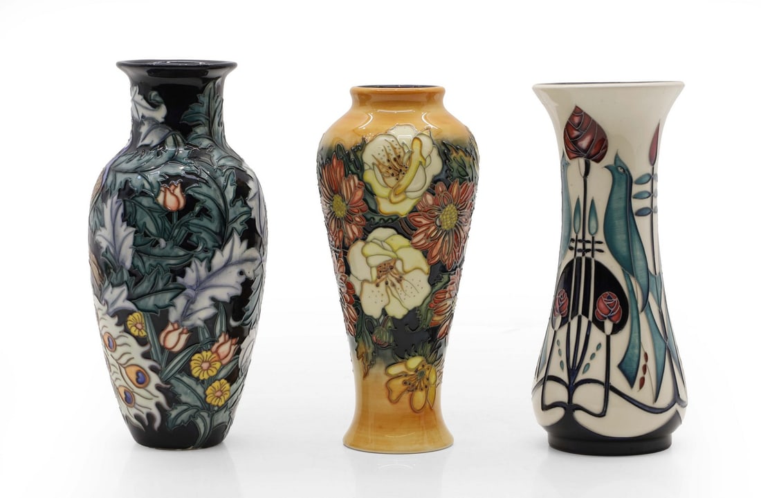 Two Moorcroft vases and a Old Tupton Ware vase,