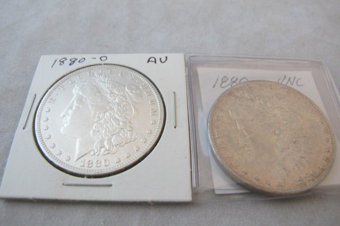 Two Morgan Silver Dollars 1880o, 1880o