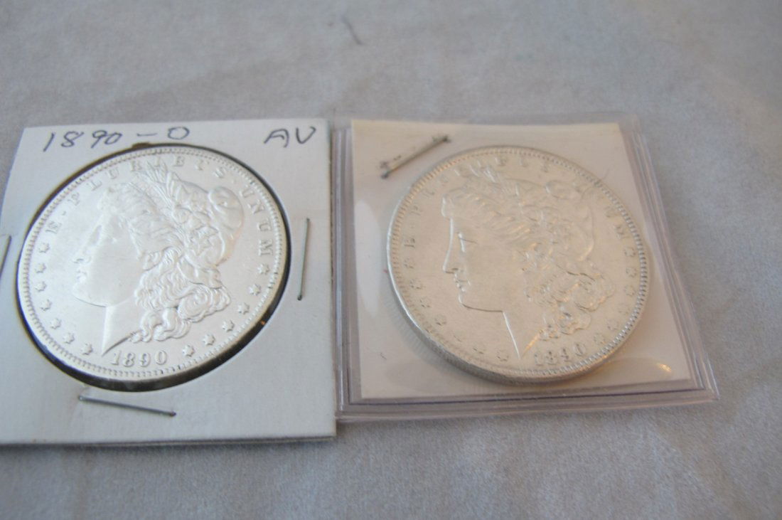 Two Morgan Silver Dollars 1890, 1890 O