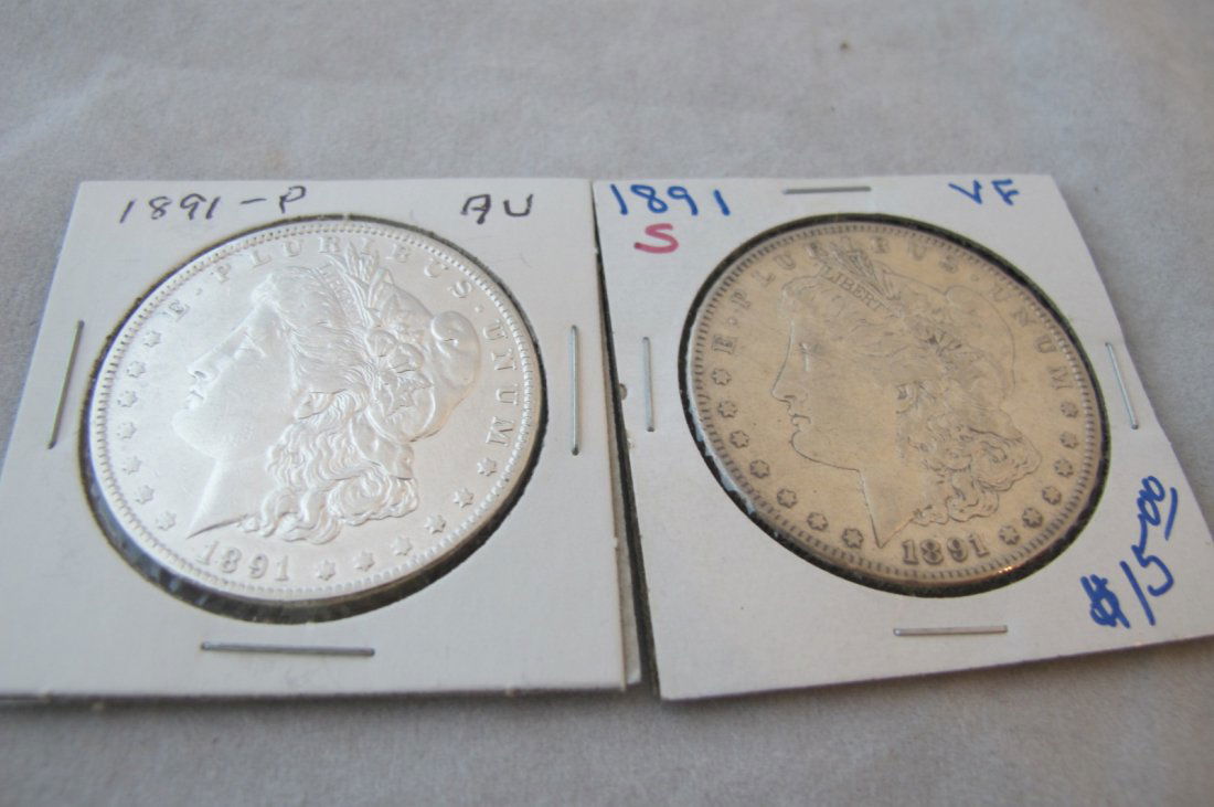 Two Morgan Silver Dollars 1891, 1891s