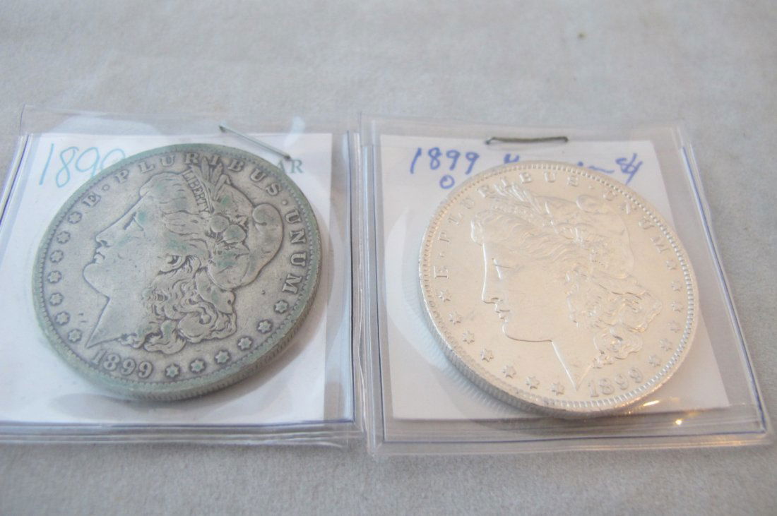Two Morgan Silver Dollars 1899, 1899o