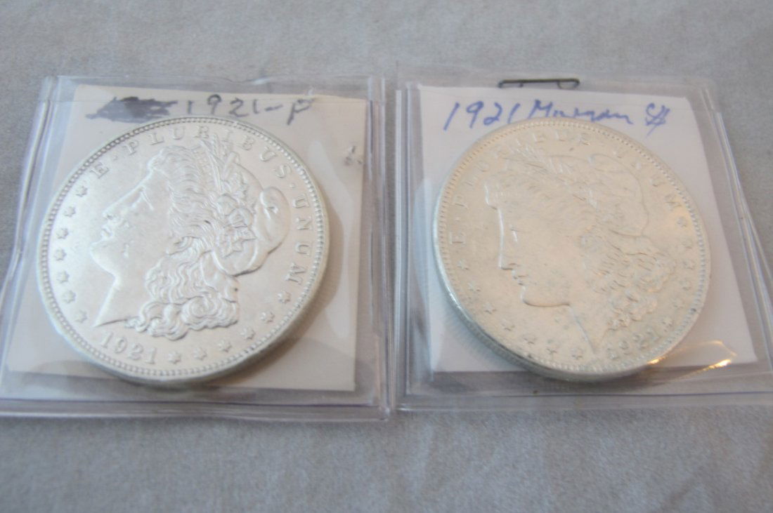 Two Morgan Silver Dollars 1921, 1921d