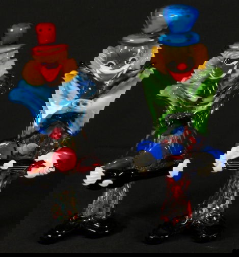 SoldTwo [2] Colorful Murano Art Glass Clown FiguresTwo [2] Colorful Murano Art Glass Clown Figures. Size: 10 in. height x 4 in. wide and 9 in. height x 3 in. wide.See Sold Price