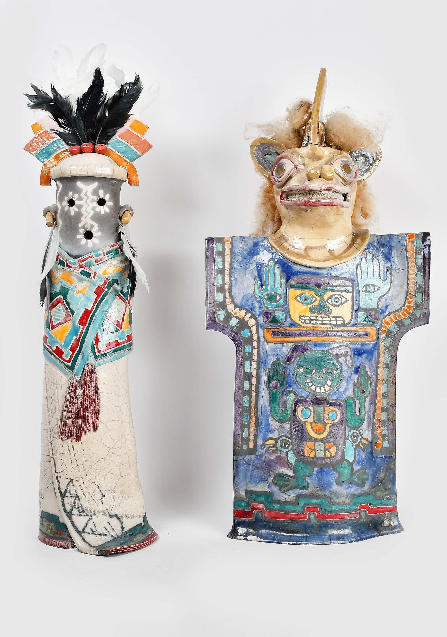 TWO NATIVE AMERICAN GLAZED POTTERY KACHINA FIGURES