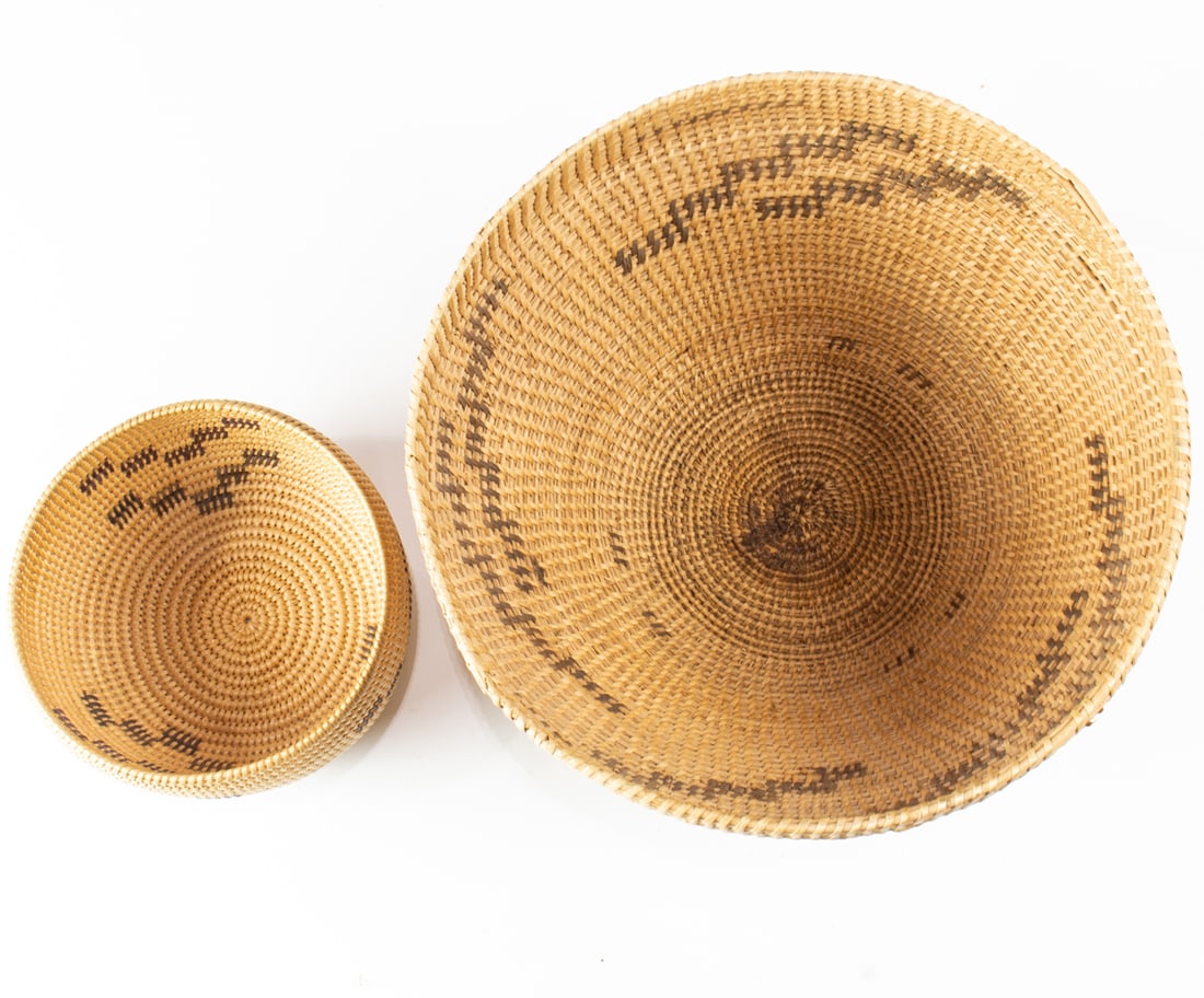Two Native American monochrome baskets