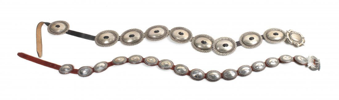 Two Navajo Concha Belts, Largest height 3 x width 3 1/2