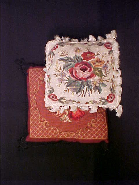 TWO NEEDLEPOINT PILLOWS Black pillow mea