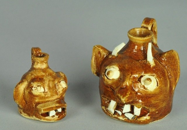 Two North Carolina Small Scale Face Jugs