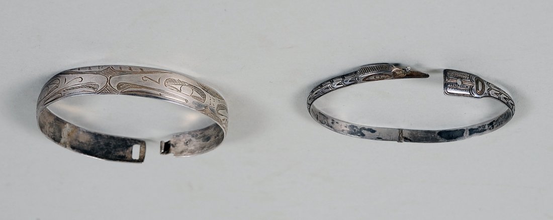 Two Northwest Coast 19TH C. Silver Bracelets; Incised